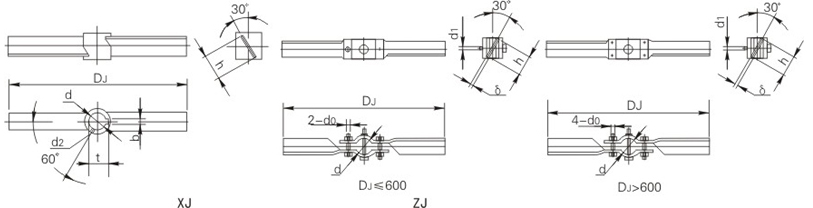 | DJ | d | h | d1 | 螺栓do | 銷(xiāo)軸φ | d2 | b | t | N/n不大于 | δ | 重量 |