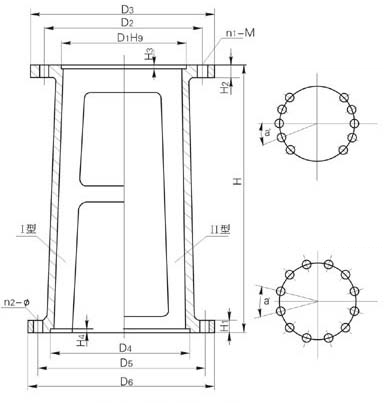 注:WJ型、DJ型、DXJ型-30A/B、35A、40B、45A四種機(jī)架底面為Ⅰ型和Ⅱ型(Ⅰ型不須標(biāo)柱,Ⅱ型須在型號(hào)后面注Ⅱ、Ⅱ型a°=30°,n2-φ為12-14)其余機(jī)架為Ⅱ型(不須標(biāo)注)