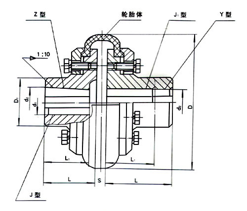 LLA型冶金設備用輪胎式聯(lián)軸器基本性能參數(shù)和主要尺寸