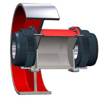 大轉(zhuǎn)矩鼓形齒式聯(lián)軸器承載沖擊性能好,但齒面接觸應(yīng)力和齒根彎曲疲勞強(qiáng)度要求高,如果我們采取特殊結(jié)構(gòu)、特殊材料、特殊工藝,那么該聯(lián)軸器就能夠滿足大直徑軋管機(jī)的要求。隨著我國經(jīng)濟(jì)的發(fā)展,大直徑軋管機(jī)需求增加,其主傳動(dòng)使用聯(lián)軸器的要求也越來越高,滿足該要求的聯(lián)軸器有十字式萬向聯(lián)軸器和大轉(zhuǎn)矩鼓形齒式聯(lián)軸器,其中十字式萬向聯(lián)軸器轉(zhuǎn)矩可以達(dá)到,但承載沖擊性能差、壽命短,這是一個(gè)很大的缺點(diǎn);目前國內(nèi)軋機(jī)用的標(biāo)準(zhǔn)聯(lián)軸器無法滿足要求,只達(dá)到需求轉(zhuǎn)遞轉(zhuǎn)矩的1/2~1/3,國外聯(lián)軸器專業(yè)制造商可以滿足要求,但由于它采用專門的技術(shù),再加上制造難度大,所以價(jià)格特別昂貴。一臺(tái)軋管機(jī)需要10套左右,再加上備件外購費(fèi)用很大。天碩聯(lián)軸器廠根據(jù)客戶需求研制的各種鼓形齒聯(lián)軸器已能滿足國內(nèi)各廠家的需求。所謂鼓形齒即為將外齒制成球面,球面中心在齒輪軸線上,齒側(cè)間隙較一般齒輪大,鼓形齒聯(lián)軸器可允許較大的角位移(相對(duì)于直齒聯(lián)軸器),可改善齒的接觸條件,提高傳遞轉(zhuǎn)矩的能力,延長(zhǎng)使用壽命。有角位移時(shí)沿齒寬的接觸狀態(tài)。具有徑向、軸向和角向等軸線偏差補(bǔ)償能力,具有結(jié)構(gòu)緊湊、回轉(zhuǎn)半徑小、承載能力大、傳動(dòng)效率高、噪聲低及維修周期長(zhǎng)等優(yōu)點(diǎn),特別適用于低速重載工況,如冶金、礦山、起重運(yùn)輸?shù)刃袠I(yè)、也適用于石油、化工、通用機(jī)械等各類機(jī)械的軸系傳動(dòng)鼓形齒式聯(lián)軸器屬于剛撓性聯(lián)軸器,齒式聯(lián)軸器是由齒數(shù)相同的內(nèi)齒圈和帶外齒的凸緣半聯(lián)軸器等零件組成。外齒分為直齒和鼓形齒兩種齒形,齒式聯(lián)軸器在工作時(shí),兩軸產(chǎn)生相對(duì)角位移,內(nèi)外齒的齒面周期性作軸向相對(duì)滑動(dòng),必然形成齒面磨損和功率消耗,因此,齒式聯(lián)軸器需在有良好和密封的狀態(tài)下工作。齒式聯(lián)軸器徑向尺寸小,承載能力大,常用于低速重載工況條件的軸系傳動(dòng),高精度并經(jīng)動(dòng)平衡的齒式聯(lián)軸器可用于高速傳動(dòng),如燃汽輪機(jī)的軸系傳動(dòng)。 NGCLZ型帶制動(dòng)輪鼓形齒式聯(lián)軸器 基本參數(shù)和主要尺寸