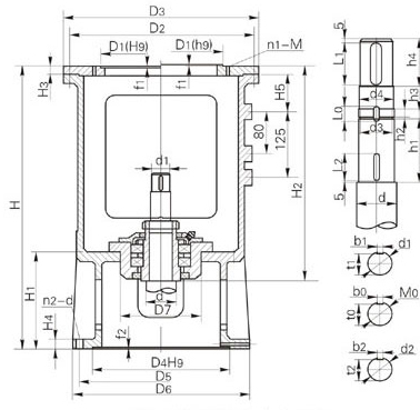本系列機(jī)架通用性強(qiáng),由于選用型DF聯(lián)軸器及安裝底蓋的擱軸裝置,所以在不拆除減速機(jī)和機(jī)架的條件下,在機(jī)架的